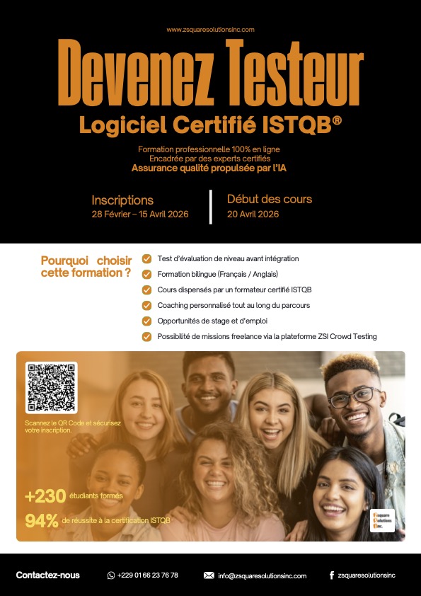 La certification ISTQB® 4.0 — le standard international reconnu par les entreprises tech du monde entier. Des compétences concrètes en Test QA et Intelligence Artificielle, les deux compétences les plus recherchées en ce moment.